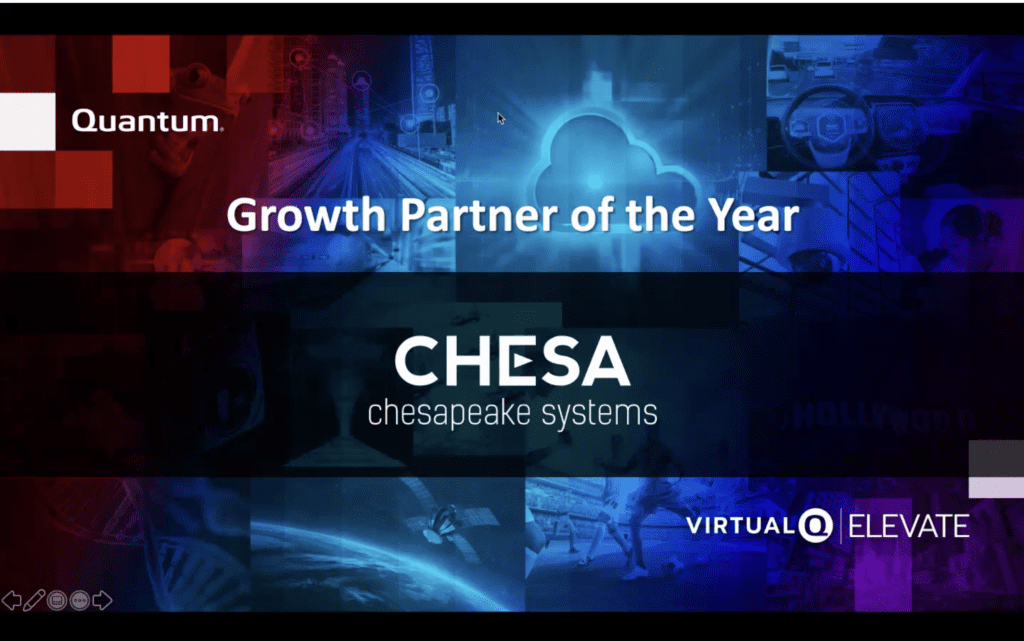Baltimore – May 27th, 2021 – Quantum Corp. has named CHESA (Chesapeake Systems) both Data Center Partner of the Year and Growth Partner of the Year in Media and Entertainment among their channel partners in the fiscal year 2021. CHESA’s Federal Division continues to bring clients the best of breed solutions to clients like NASA Kennedy Space Center and NIH. CHESA has grown into a national systems integrator with expertise in media asset management and workflow consulting, pre-sales, sales, as well as providing Quantum certified professional services and managed services. Their Media and Entertainment Division provides some of the largest studios in the world with global solutions. Lance Hukill, VP of Sales at CHESA states, “We’re very pleased to be acknowledged by Quantum across both of their Sales teams (Media and Enterprise). It shows our diversity and broader leverage for our technology partners as well as customers.“