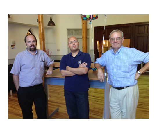 Chesa CEO Mark Dent (l) and Chairman George Brecht (r) with VP of Development Paul Roth on his 10th anniversary with the company. (BTW, there is a story to the desk they are standing in front of. It was Paul's last desk here before he t...